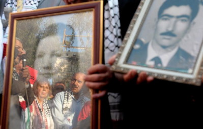 Palestinians carry the pictures of their deceased loved ones during a memorial service commemorating the Sabra and Shatila massacre. (Photo: Marwan Tahtah)